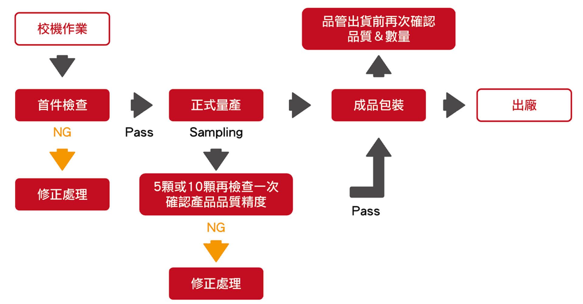 5. 產品量產及包裝 確認樣品符合客戶需求後,安排產程,進行大量製作生產。